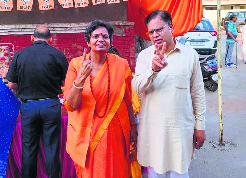 बंतो कटारिया ने माथा टेकने के बाद डाली वोट