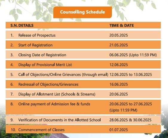 इस वर्ष दाखिले की पूरी प्रक्रिया नेशनल इंस्टीट्यूट ऑफ इलेक्ट्रॉनिक्स एंड इन्फॉर्मेशन टेक्नोलॉजी (NIELIT) के माध्यम से संचालित होगी। यह पूरी तरह ऑनलाइन, पारदर्शी और मानवीय हस्तक्षेप से मुक्त प्रणाली होगी, जिससे छात्रों को आवेदन से लेकर प्रवेश तक की हर जानकारी डिजिटल माध्यम से मिलेगी और उन्हें स्कूलों के चक्कर नहीं काटने पड़ेंगे।