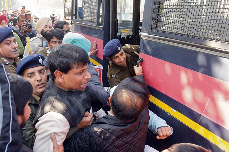 बिजली निजीकरण का विरोध कर रहे कांग्रेसी पुलिस हिरासत में