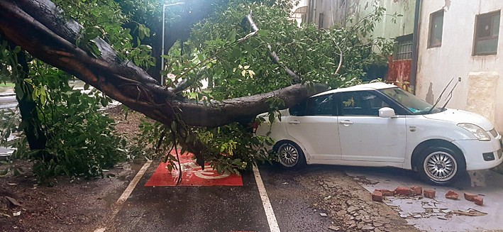 पेड़ गिरने से जान गंवाने वाली हीराक्षी के मामा की कार पर गिरा पेड़