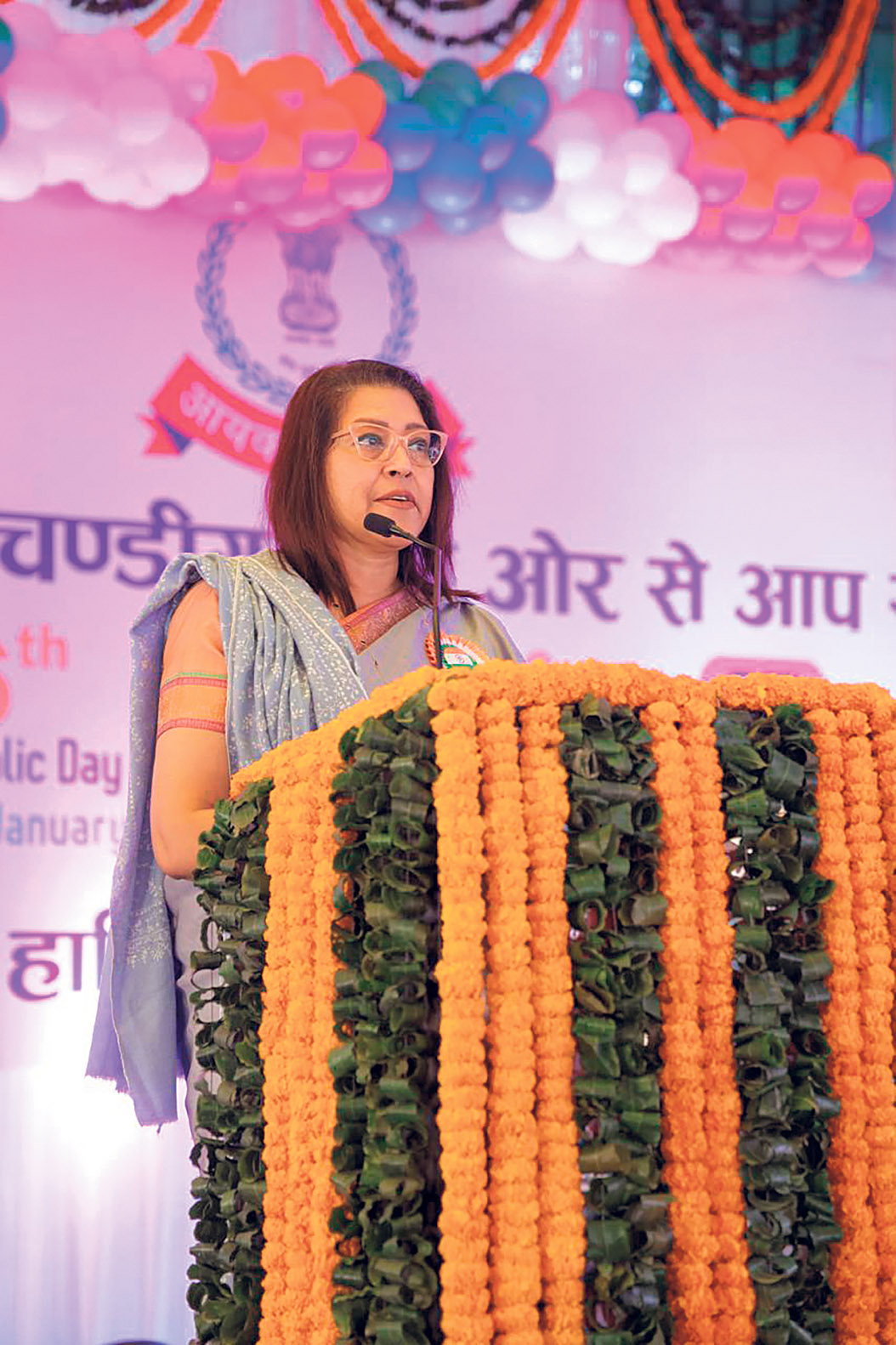 मनीमाजरा (चंडीगढ़) (हप्र) : धूमधाम से गणतंत्र दिवस के मौके पर सेक्टर-17 में समारोह का आयोजन किया गया, जहां मुख्य सचिव राजीव वर्मा ने तिरंगा फहराया और परेड की सलामी ली। इसके बाद मुख्य सचिव ने चंडीगढ़ में हुए विकास और उसकी प्रगति पर अपना संदेश भी दिया। सलामी के बाद मुख्य सचिव स्वतंत्रता सेनानियों के परिवारों से मिले और उन्हें शाल भेंट की। सभी कार्यक्रमों को सहजता से देखा और बेहतर कार्य करने वालों को सम्मानित किया। स्कूल के बच्चों ने रंगारंग कार्यक्रमों की प्रस्तुतियां दीं। छात्राओं ने योगा के गुर सिखाए। जीसीजी कॉलेज की छात्राओं ने भी क्लासिक भांगड़े से सबका मन मोह लिया।