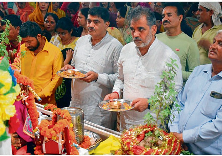 पंचकूला (हप्र) : भगवान श्रीकृष्ण जन्माष्टमी के अवसर पर पंचकूला के महापौर कुलभूषण गोयल ने विभिन्न मंदिरों में जाकर पूजा अर्चना की और भगवान का आर्शीवाद लिया। कुलभूषण गोयल ने लक्ष्मी नारायण मंदिर सेक्टर 6 में आयोजित श्रीकृष्ण जन्माष्टमी कार्यक्रम में अपनी धर्मपत्नी अंजू गोयल सहित पहुंचकर हिस्सा लिया। श्रीमाता मनसा देवी मंदिर में आयोजित जन्माष्टमी कार्यक्रम में भी भाग लिया। इसके अलावा गांव अभयपुर, हरिपुर, सेक्टर 7, 8, 9 और अन्य मंदिरों में पूजा अर्चना की।