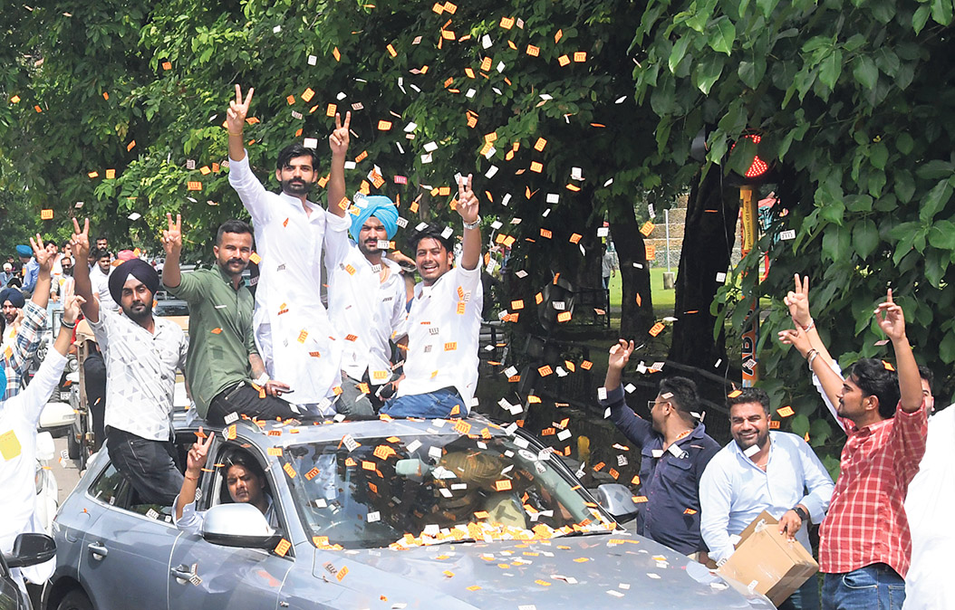 सेक्टर-10 स्थित डीएवी कालेज में चारों पदों पर एचएसए और एचपीएसयू के पैनल ने जीत हासिल की। लविश सेहरावत ने प्रेजिडेंट,उपाध्यक्ष पद पर मृणाल स्टेता,सचिव पद पर सौरव पनवार और संयुक्त सचिव पद पर याइमा ओइनमहिमस ने जीत हासिल की। लविश सेहरावत ने 2004 वोट हासिल किए, जबकि उपाध्यक्ष पद पर मृणाल स्टेता ने 2061, सचिव पद पर सौरव पनवार ने 1304 और संयुक्त सचिव पद पा याइमा ओइनम हिमस ने 1828 वोट हासिल किए।
