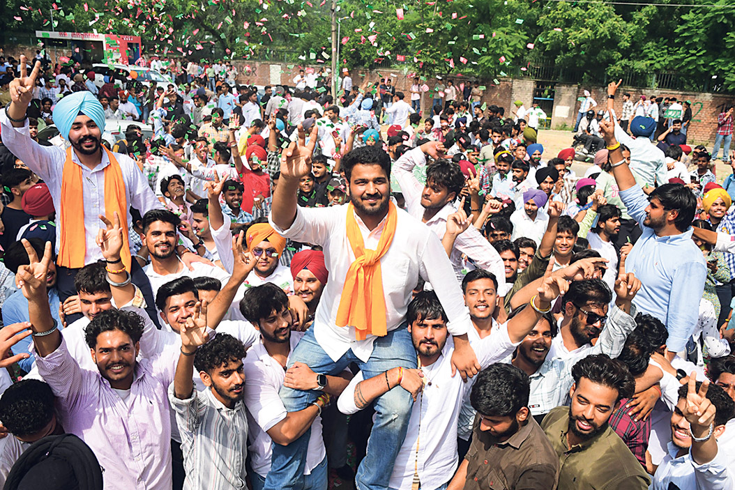 एबीवीपी ने चंडीगढ़ के पीजीजीसी-11 में विरोध प्रदर्शन किया और चुनाव परिणामों में गड़बड़ी का आरोप लगाया। प्रदर्शनकारियों ने निष्पक्ष और स्पष्ट परिणाम सुनिश्चित करने के लिए अधिकारियों से पारदर्शिता और तत्काल स्पष्टीकरण की मांग की। पीजीजीसी-11 में चारों पदों पर स्टूडेंट ऑर्गेनाइजेशन ऑफ इंडिया(सोई) के उम्मीदवारों ने जीत दर्ज करवाई है। नतीजों के मुताबिक ज्योति प्रेजिडेंट, आरती वाइस प्रेजिडेंट, प्रियंका जनरल सेक्रेटरी और सिमरनजीत ज्वाइंट सेक्रेटरी बनी हैं। सेक्टर-26 स्थित खालसा कॉलेज में इस बार चारों पदों पर खालसा कॉलेज स्टूडेंट यूनियन ने कब्जा किया है। अमन गोयत ने प्रेजिडेंट पद पर जीत दर्ज की, वहीं वाइस प्रेजिडेंट पद पर हर्षवीर सिंह, ज्वाइंट सेक्रेटरी रज्जी और ज्वाइंट सेक्रेटरी पद पर विश्वजीत सिंह ने जीत हासिल की। सेक्टर-46 स्थित पोस्ट ग्रेजुएट गवर्नमेंट कालेज में प्रधान पद पर एचएसए और एनएसयूआई पैनल से परवीन, उपाध्यक्ष पद पर एबीवीपी की डिंपल, महासचिव पद पर एनएसयूआई की मानसी जबकि सचिव पद पर अनिकेत निर्विरोध चुने गए।