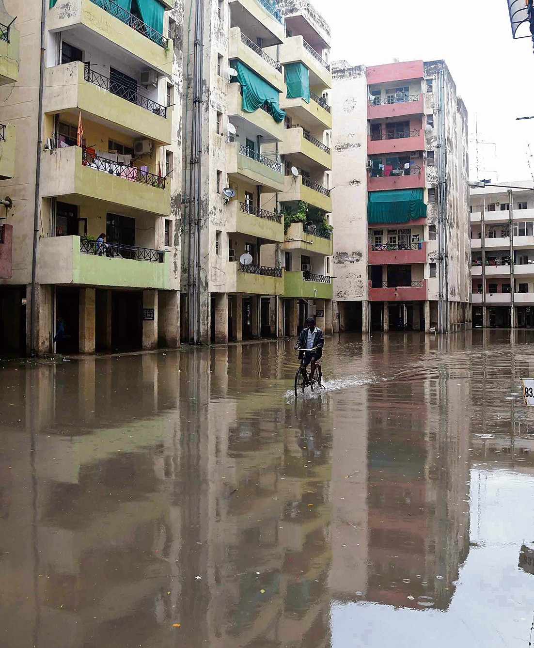 चंडीगढ़ में तेज बरसात से जलभराव जगह-जगह रुका ट्रैफिक
