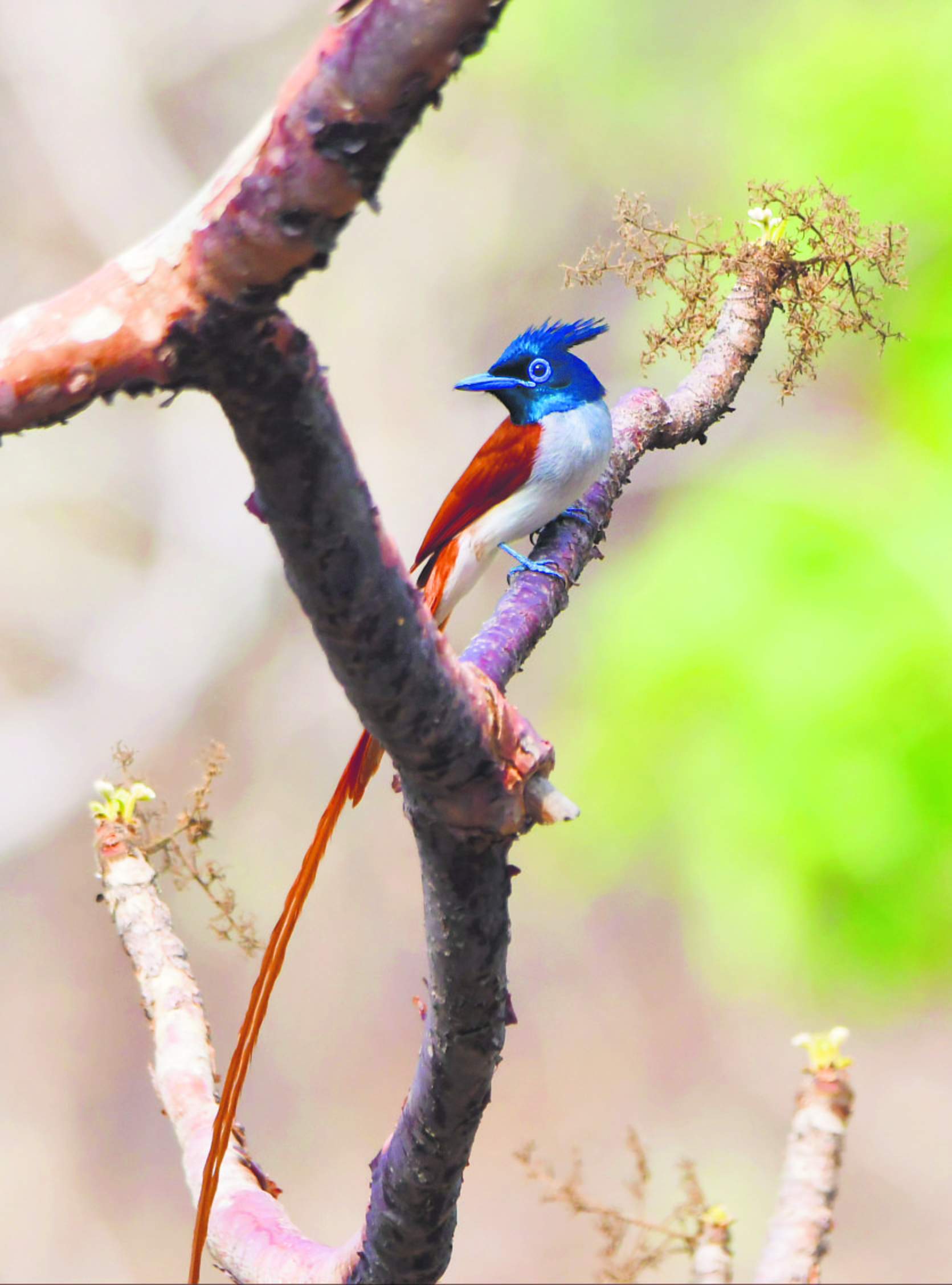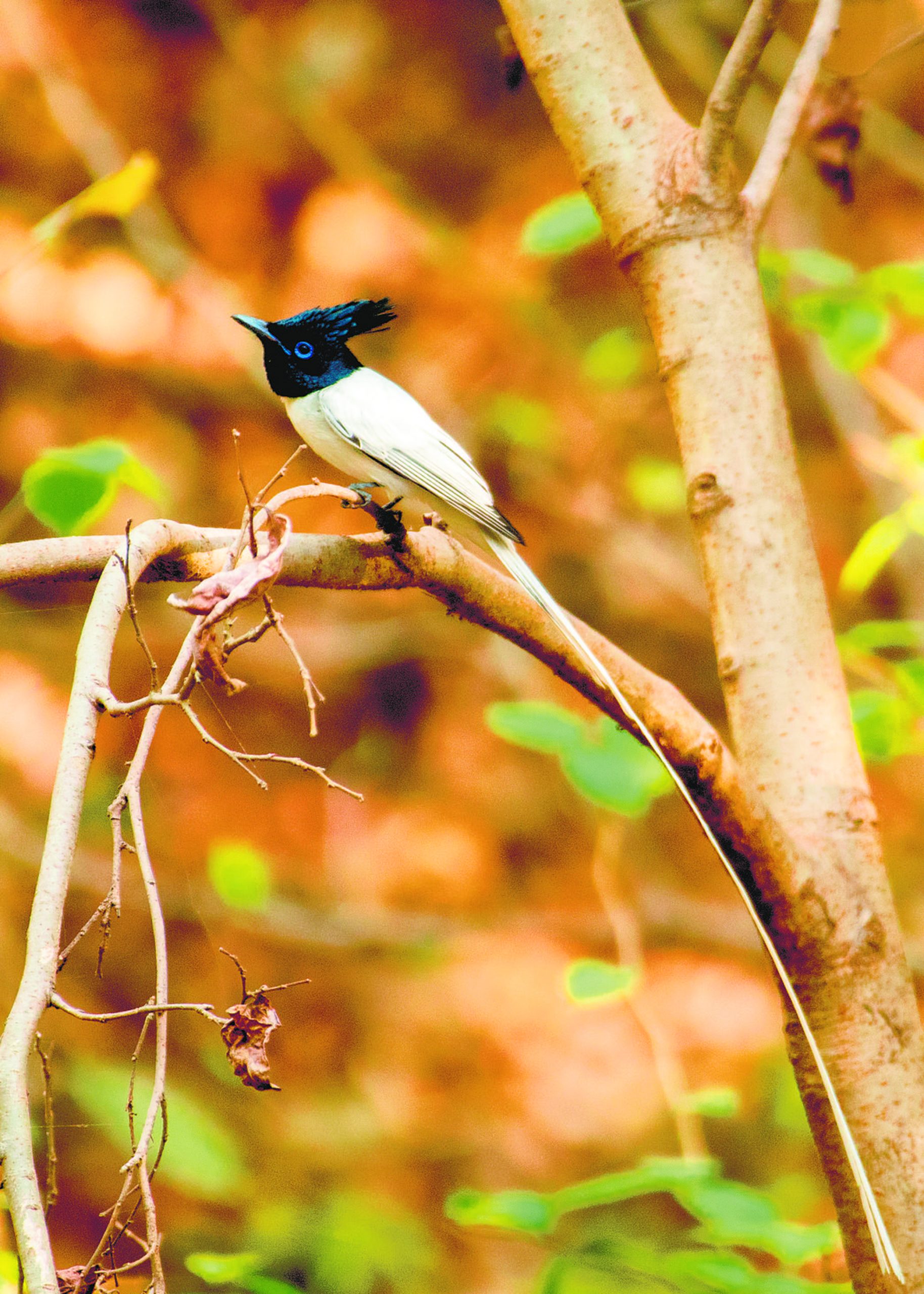 यह अति सुन्दर पक्षी मध्य प्रदेश का राज्य पक्षी भी है। लाल भूरे और श्वेत रंग के साथ नीली आंखों और काली कलगी का आकर्षण बेजोड़ है। नर पक्षी की लम्बी फीते जैसी पूंछ इसे विलक्षण सुंदरता प्रदान करती है। मादा की पूंछ छोटी ही होती है। ये पक्षी जून महीने में आते हैं और जंगलों में पानी की धाराओं के पास लटकता हुआ प्याले के आकार का घोंसला बना कर प्रजनन आरंभ कर देते हैं। महीने भर में चूज़े निकल आते हैं और सितंबर में पूरा परिवार दक्षिण भारत की ओर प्रवास कर जाता है।