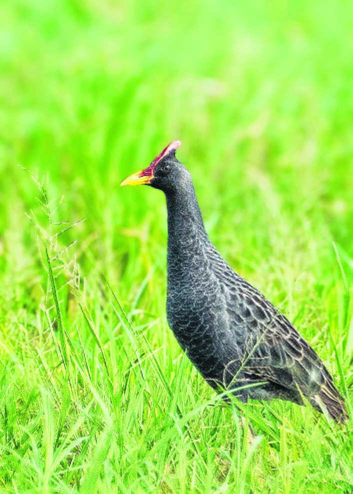 जलकुक्कुट रैलिडी परिवार के उभयचर पक्षी हैं जो अपना अधिकांश समय जल वनस्पतियों के अंदर ही बिताते हैं। लाल कलगी, पीली चोंच, काला धूसर शरीर और सुर्ख पैरों के साथ इस जलीय मुर्गे की सुंदरता देखते ही बनती है। अत्यधिक शर्मीले होने के बावजूद कभी-कभी खुले धान के खेतों में नजर आ जाते हैं। ये काफी शोर मचाने वाले पक्षी हैं और विशेष रूप से सुबह और शाम के समय ज़ोर से गूंजते हुए सुने जा सकते हैं। ये मुर्गे पूर्णतया प्रवासी तो नहीं हैं परन्तु पानी की उपलब्धता के अनुसार अपना स्थान जरूर बदलते रहते हैं।