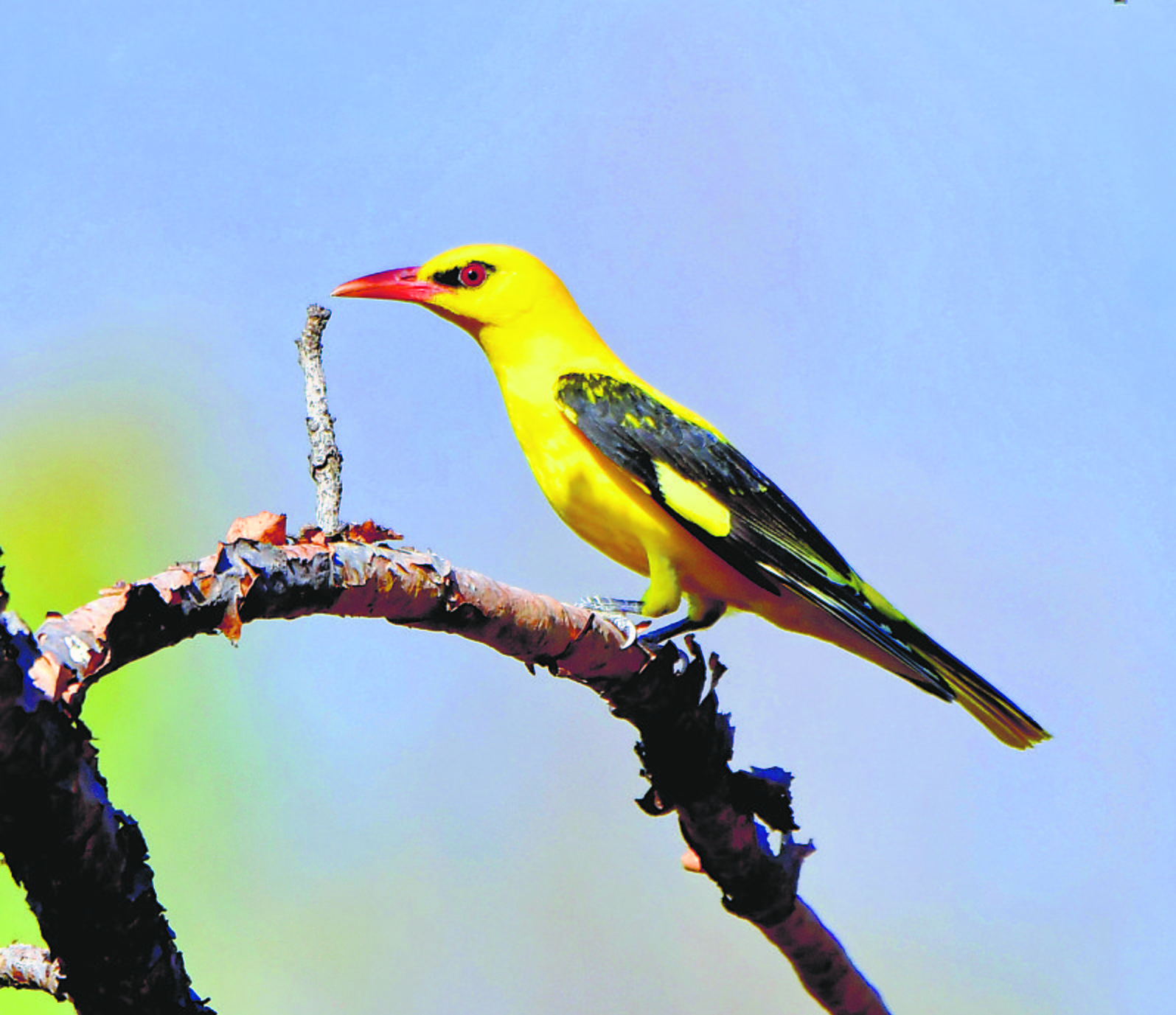 सुनहरे पीले रंग का मैना के आकार का एक सुंदर पक्षी है जिसका मीठा गीत जून महीने के अंत तक सभी कोनों से गूंज उठता है। यह एक शहरी पक्षी है और घरों के आसपास आसानी से देखा जा सकता है। बड़े पेड़ों के ऊपरी हिस्से में पत्तों को सिल कर कटोरे जैसा घोंसला बना कर प्रजनन करता है।