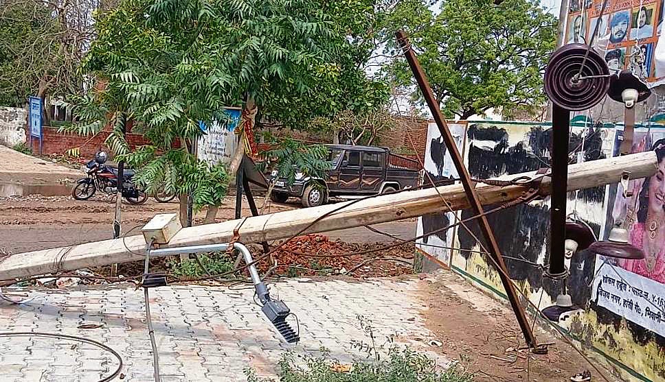 भिवानी (हप्र) : तेज बारिश, आंधी से जिले में भारी नुकसान हुआ है और जनजीवन भी प्रभावित हुआ है। जगह-जगह पेड़ व बिजली के खंभे गिर गय हैं। जिससे यातायात व बिजली व्यवस्था प्रभावित हुई है। बिजली आपूर्ति के साथ पेयजल आपूर्ति भी ठप हो गई। तूफान के चलते सोलर प्लेटें भी उखड़ गई। सबसे ज्यादा असर बिजली विभाग पर देखने को मिला है क्योंकि सैंकड़ों बिजली के खंभे व ट्रांसफार्मर जमींदोज हो गए। गावों में 12 घंटे बीत जाने के बावजूद बिजली आपूर्ति बहाल नहीं हो पाई। हिसार, जयपुर, दिल्ली राष्ट्रीय राजमार्गों पर कई जगह यातायात बाधित हुआ है। तूफान के बाद बारिश के कारण अनाज मंडी में खुले में पड़ी गेहूं व सरसों भी खराब हुई है। हजारों क्विंटल सरसों भीग गई। शहर में कई जगह जलभराव की स्थिति भी पैदा हो गई। कई इलाकों में तो पानी की निकासी देर शाम तक नहीं हो पाई थी।