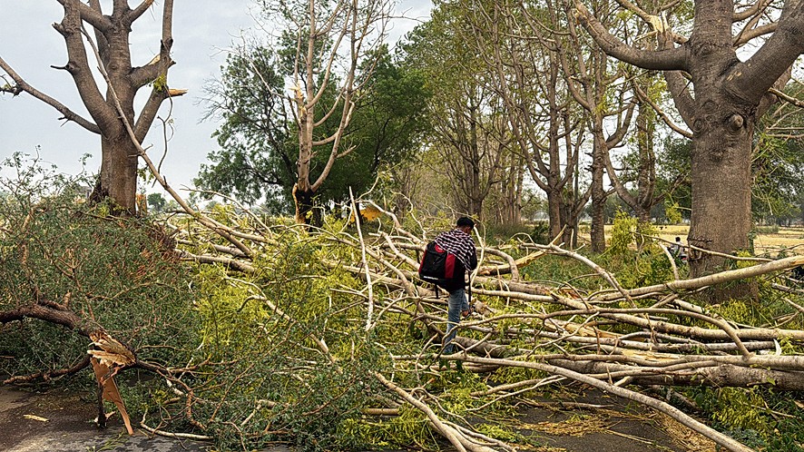 चरखी दादरी (हप्र) : शुक्रवार तड़के आंधी और जोरदार बारिश के कारण सैंकड़ों पेड़ टूट गये। सड़कों के बीचों-बीच पेड़ टूटने के चलते वाहन चालकों को काफी परेशानियों का सामना करना पड़ा। वहीं कई स्थानों पर जलभराव हो गया। बता दें कि दादरी जिले में लगातार गर्मी बढ़ती जा रही थी और तापमान 40 डिग्री सेल्सियस को पार कर गया था। जिससे दिन के समय लोगों को गर्मी के कारण काफी परेशानी उठानी पड़ रही थी। शुक्रवार तड़के गहरे बादल छाए और बिजली चमकने व गर्जना के साथ बारिश हुई। जिससे तापमान 4 डिग्री तक की गिरावट आई है। वहीं कई स्थानों पर पेड़ टूटने के कारण मार्ग अवरुध हो गए। यहां के निवासी कपूर सिंह व साहिल कुमार ने बताया कि कई स्थानों पर पेड़ टूटने के कारण यातायात व्यवस्था बाधित हो गई। इन मार्गों पर सुबह के समय स्कूल बसें भी फंस गई और विद्यार्थी स्कूल नहीं जा सके। ड्राइवर सड़क के साथ लगते खेतों से वाहन लेकर आगे निकले। वहीं अनाज मंडी में खुले में रखा गेहूं व सरसों भीग गया।