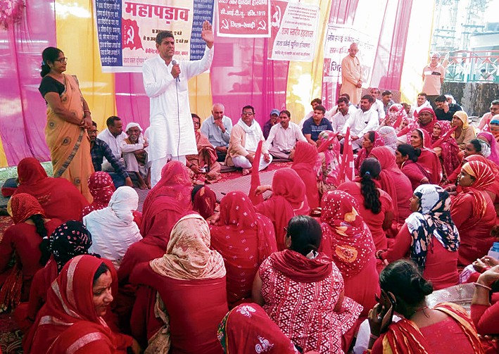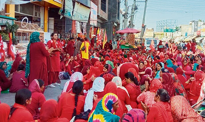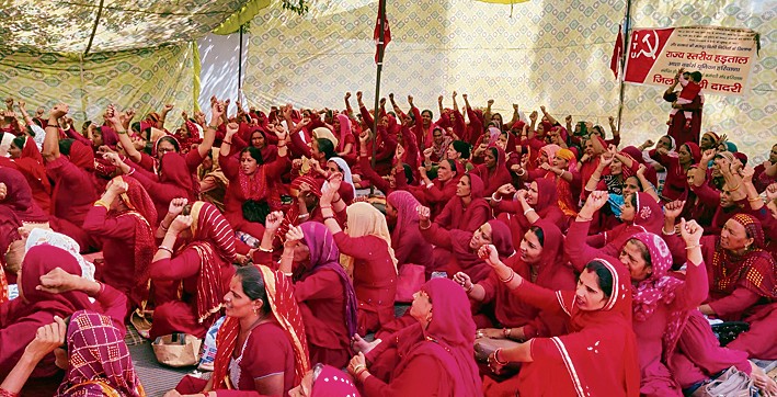 जुलाना (जींद) (हप्र) : जिलाभर की हड़ताली आशा वर्करों ने बुधवार को जींद में भाजपा विधायक डा. कृष्ण मिड्ढा के आवास के बाहर सड़क पर पड़ाव डाला। इसकी अध्यक्षता यूनियन की जिला प्रधान नीलम ने की, जबकि संचालन जिला सचिव राजबाला द्वारा किया गया। इससे पहले ये आशा वर्कर जींद के नेहरू पार्क में इकट्ठी हुईं और जनसभा की। जनसभा के बाद नेहरू पार्क से लेकर जींद के विधायक के आवास तक प्रदर्शन किया और विधायक के आवास के बाहर 24 घंटे का पड़ाव शुरू किया। इस दौरान सीटू के जिला प्रधान सतबीर खरल, सर्व कर्मचारी संघ के जिला प्रधान संजीव ढांडा,महिला सीमित की जिला प्रधान नूतन प्रकाश,सीटू के जिला सचिव रमेश चंद्र, संयुक्त् किसान मोर्चा के नेता फूलसिंह शयोकंद भी मौजूद थे। इस मौके पर मुकेश, नीलम, सुमन, नेहा, रेणु, सुनीता, अनिता, अंजु, गुड्डी आदि भी शामिल रहीं।