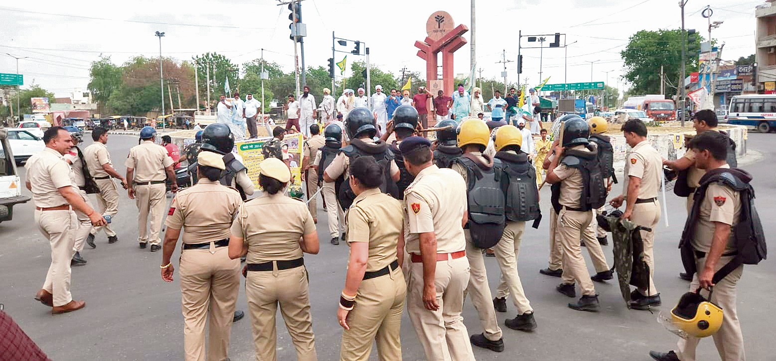 किसान मामलों व अत्याचार पर सवालजवाब को बाजिद किसान भाजपा प्रत्याशी अशोक तंवर के लिए मुसीबत बने हुए हैं। रविवार को किसानों ने सिल्वर जुबली चौक पर अशोक तंवर के चुनाव कार्यक्रम के सामने काली झंडियों से तीखा विरोध प्रदर्शन किया। किसान भाजपा प्रत्याशी से अपने मसलों पर सवाल करना चाहते थे। महज़ 40 मीटर की दूरी सिल्वर जुबली चौक की ऊंची दीवार पर खड़े किसानों के तीखे नारों ने अशोक तंवर के संबोधन व बैठक में खूब खलल डाला। किसान प्रदर्शन के चलते भारी संख्या में महिला व पुरुष पुलिस बल तैनात था।