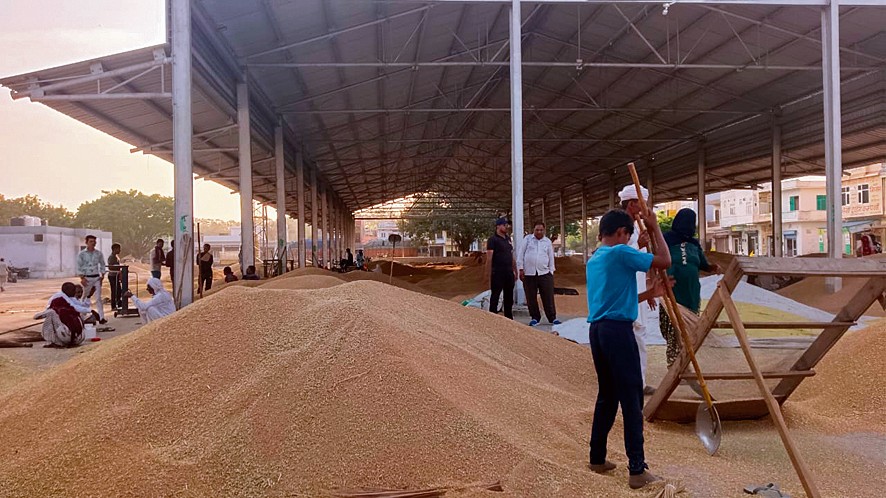 कलायत (निस) : कलायत अनाज मंडी में गेहूं की आवक शुरू हो गई है। बृहस्पतिवार को करीब आधा दर्जन किसानों द्वारा करीब 3500 क्विंटल गेहूं लेकर कलायत अनाज मंडी पहुंचे। लेकिन नमी की मात्रा अधिक होने के कारण गेहूं की खरीद नहीं की जा सकी। मार्केट कमेटी सचिव अरविंद कुमार श्योकंद ने बताया कि सरकार के दिशानिर्देश अनुसार एक अप्रैल से गेहूं की खरीद शुरू की गई है। पिछले कई दिनों से कलायत अनाज मंडी में गेहूं की आवक नहीं हुई थी। बृहस्पतिवार को खरीद एजेंसी वेयर हाउस की तरफ से गेहूं की खरीद की जानी थी। अलग अलग गांव से किसान करीब 3500 क्विंटल गेहूं की फसल लेकर कलायत अनाज मंडी पहुंचे थे।