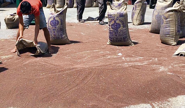 कैथल (हप्र) : अनाज मंडी में गेहूं की खरीद शाम 3 बजे शुरू हो गई है। हैफेड ने खरीद शुरू की। हैफेड अधिकारियों का कहना था सवेरे 10 बजे से 2 बजे तक सरसों की खरीद होती है, उसके बाद हम गेहूं की खरीद शुरू करेंगे। जिस गेहूं की ढेरी में 12 प्रतिशत नमी मिली उसी की खरीद की गई है। ज्यादातर गेहूं में नमी की मात्रा 14 परसेंट से लेकर 16 तक मिली जिस कारण उसे गेहूं की खरीद नहीं की गई। सभी किसान भाइयों से अपील है कि गेहूं को सुखाकर मंडी में लेकर आएं ताकि आते ही गेहूं की फसल बिक जाए। आज गेहूं खरीद में है हैफेड के कर्मचारी मार्केट कमेटी के सचिव बसाऊ राम, मंडी के दोनों प्रधान रामकुमार व सोहनलाल, किसान नेता सतपाल दिल्लोंवाली साथ में थे।
