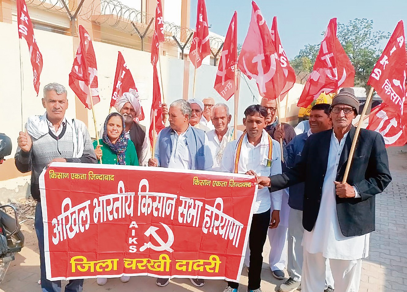 संयुक्त किसान मोर्चा व ट्रेड यूनियनों के आहवान पर जिला चरखी दादरी अखिल भारतीय किसान सभा व सीआईटीयू ने संयुक्त रूप से मांगों को लेकर सड़कों पर उतरकर रोष प्रदर्शन किया। प्रदर्शन के बाद उपायुक्त कार्यालय पहुंचकर सीटीएम को राष्ट्रपति के नाम ज्ञापन सौंपा। साथ ही मांगे पूरी नहीं होने पर अांदोलन की चेतावनी भी दी है। इस दौरान किसान सभा जिलाध्यक्ष रणधीर कूंगड़, सीआईटीयू प्रधान कमलेश भैरवी, सुरेंद्र मोठसरा, ओम नंबरदार, फतेह सिंह चिडिया, ईश्वर दांतौली, राजकुमार धिकाडा, जयबीर सिंह, सुरेंद्र आदमपुर, अमरजीत पैंतवास कला, बबली इत्यादि उपस्थित रहे।