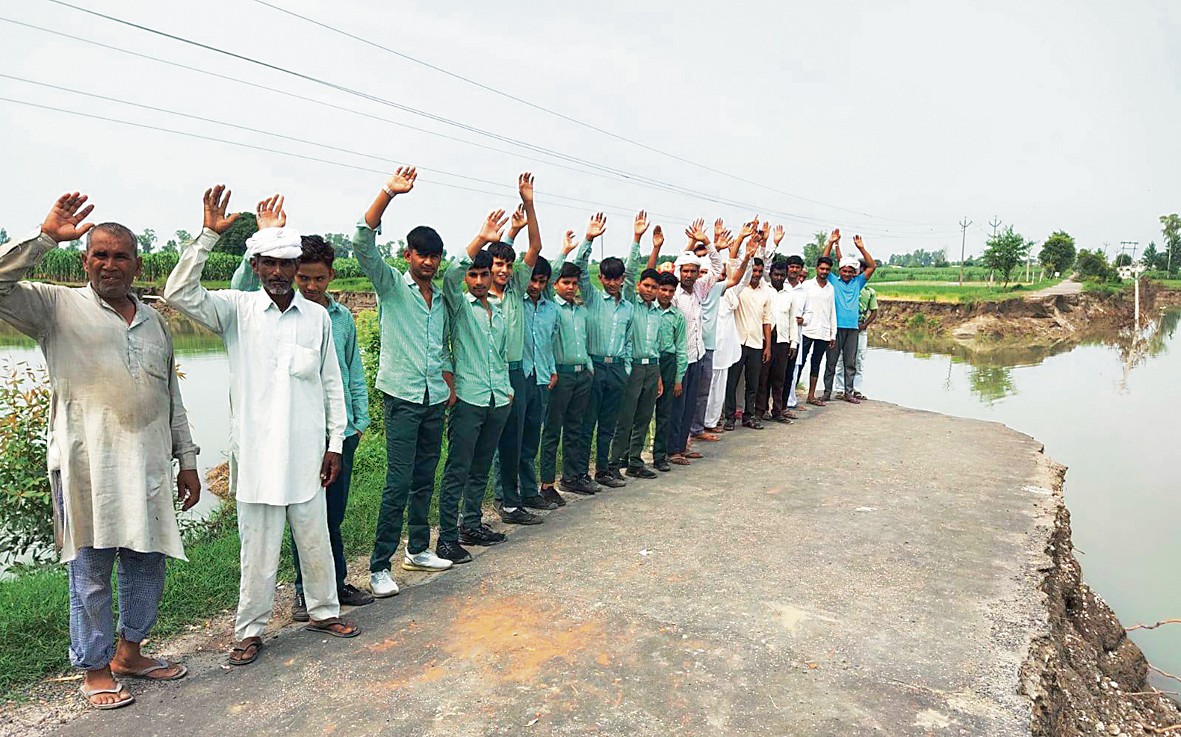 टूटी सड़क के विरोध में ग्रामीणों, छात्रों का प्रदर्शन