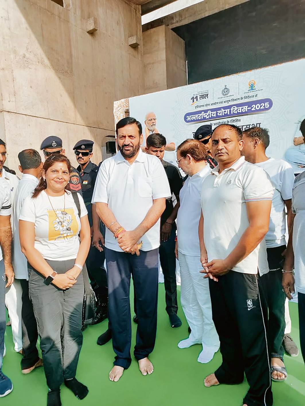 इस अवसर पर मुख्यमंत्री नायब सिंह सैनी ने योग प्रोटोकॉल का पालन करते हुए विभिन्न आसन, प्राणायाम और ध्यान का अभ्यास किया और सभी उपस्थित लोगों को भी नियमित योग करने के लिए प्रेरित किया। उन्होंने अपने संबोधन में कहा कि योग भारत की अमूल्य धरोहर है, जो केवल शारीरिक स्वास्थ्य का साधन नहीं, बल्कि जीवन को पूर्ण रूप से संयमित और संतुलित बनाने का माध्यम है। प्रधानमंत्री नरेंद्र मोदी के प्रयासों से पूरी दुनिया ने भारत की इस प्राचीन विद्या को अपनाया है। हम सबका दायित्व है कि योग को अपने जीवन का हिस्सा बनाएं।