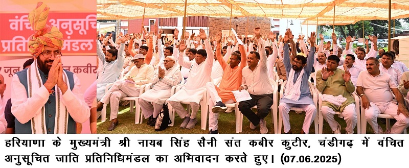 डीएससी समाज के लोग मुख्यमंत्री का नागरिक अभिनंदन करने चंडीगढ़ पहुंचे थे। प्रतिनिधिमंडल ने सीएम को पगड़ी पहनाकर उनका सम्मान किया। समाज के लोगों ने मुख्यमंत्री को 11 जून को सिरसा में मनाई जाने वाली संत कबीर जयंती के लिए भी निमंत्रण भी दिया। मुख्यमंत्री ने समाज के लोगों को योद्धा बताते हुए कहा कि समाज ने जो यह सम्मान की पगड़ी मेरे सिर पर रखी है, यह सम्मान समाज का है और मैं इस सम्मान को कभी कम नहीं होने दूंगा।