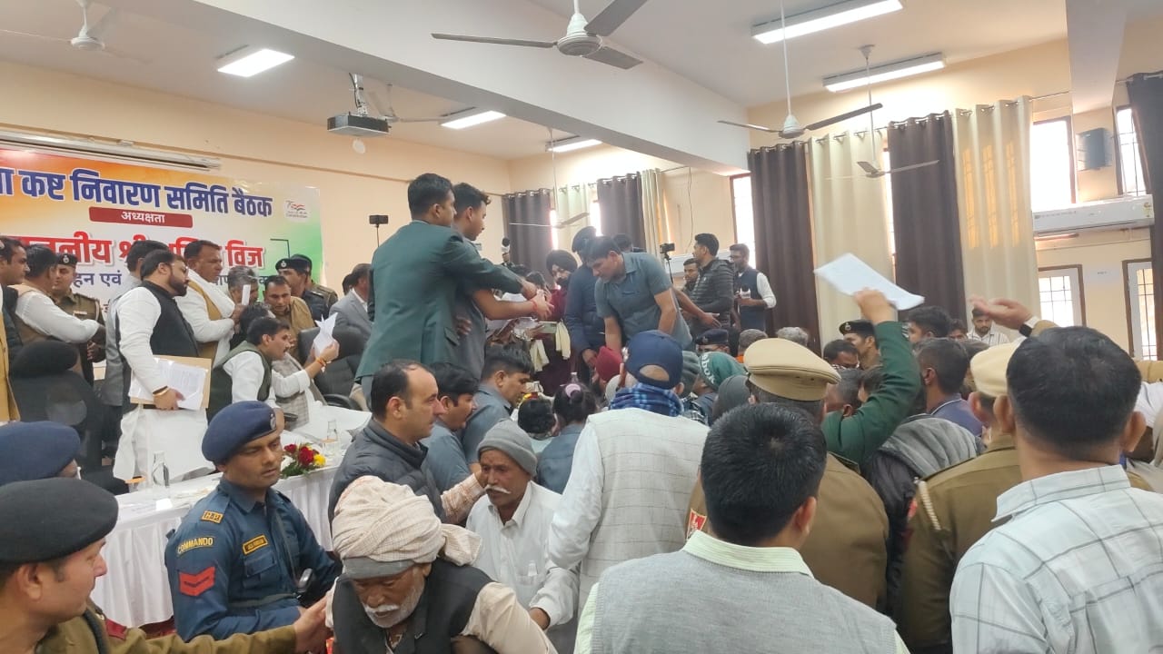 मीटिंग में केवल उन्हीं लोगों को अंदर जाने दिया गया, जिसकी शिकायत लगी हुई थी। इस बीच मंत्री अनिल विज मीटिंग लेने पहुंचे तो लोगों ने उनको बताया कि पुलिस अंदर नहीं आने दे रही है। लोगों की बात सुनने के बाद अनिल विज भड़क गए। उन्होंने कहा मैं सभी से मिलकर जाऊंगा। उन्होंने अधिकारियों से कहा कि वे लोगों के चक्कर न कटवाएं बल्कि उनके काम करें। हमें लोग ये ना कहे कि यहां तारीख पर तारीख मिलती है जज साहब! न्याय नहीं मिलता।