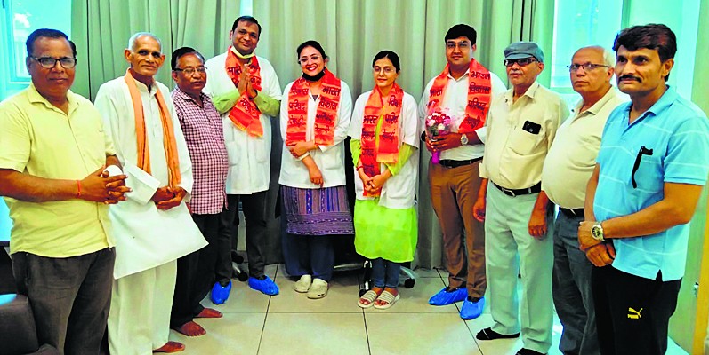 रेवाड़ी (हप्र) : अंतर्राष्ट्रीय चिकित्सक दिवस पर सोमवार को शहर के आरबी यादव अस्पताल में भारत विकास परिषद द्वारा कार्यक्रम आयोजित किया गया। इसमें परिषद के पदाधिकारियों द्वारा डाॅ. रामबाबू यादव, डाॅ. सुमन यादव, डाॅ. विराटवीर यादव, डाॅ. राहुल सिंगला, डाॅ. अचिन कुमार गुप्ता, डाॅ. दीपक यादव, डाॅ. मोहन सिंगला, डाॅ. पीसी सिंगला, डाॅ. बसंत गुप्ता, डाॅ. दिव्या गुप्ता, डाॅ. विवेक शर्मा, डाॅ. भावना भुराड़िया, डाॅ. दीपक सैनी को सम्मानित किया गया। जिला समन्वयक मुकेश सैनी सहित शाखा अध्यक्ष दिनेश सैनी, सचिव हुकमचन्द प्रजापत, रामकिशोर, शाखा संरक्षक रमेश सचदेवा, योगेश शर्मा, नीतीन गोयल, प्रेम मेहन्दीरता व दयाराम आर्य इस अवसर पर उपस्थित थे।