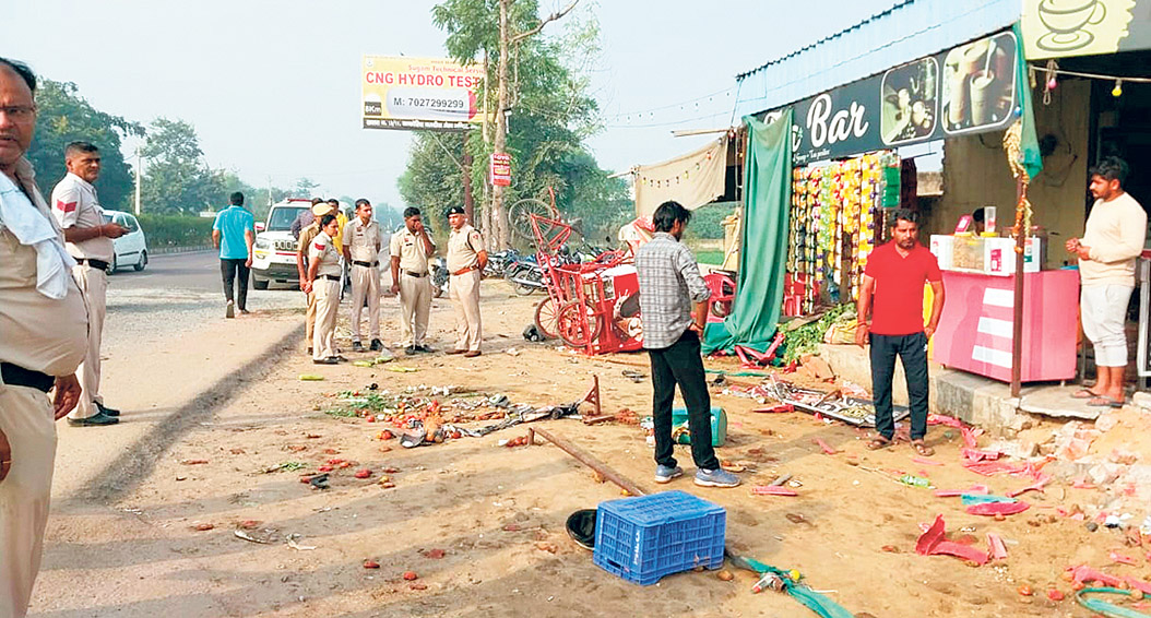 शव ले जा रही एंबुलेंस व तीन बाइक को टक्कर मारने के बाद टी स्टॉल में घुसा वाहन