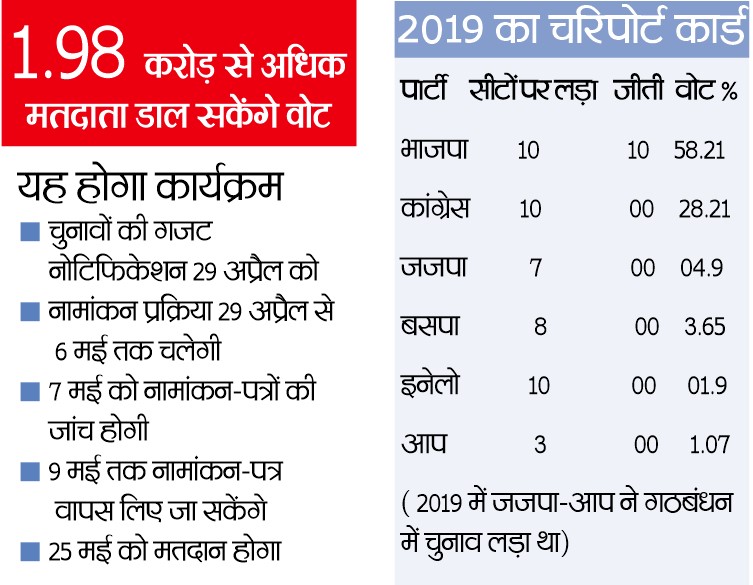 हरियाणा को चुनाव आयोग ने छठे चरण में इसलिए शामिल किया है, क्योंकि अप्रैल में रबी का फसली सीजन होगा। किसान सरसों व गेहूं सहित दूसरी फसलों की कटाई में व्यस्त होंगे। 2014 में चुनाव आयोग ने हरियाणा में शुरुआती चरणों में शामिल हुआ था। किसानों के खेतों में व्यस्त होने की वजह से मतदापन प्रतिशत कम रहा। इसके बाद 2019 में छठे चरण में शामिल किया तो मत प्रतिशत बढ़ा। इसी वजह से इस बार आयोग ने हरियाणा को छठे चरण में रखा है और पंजाब को सातवें चरण में।