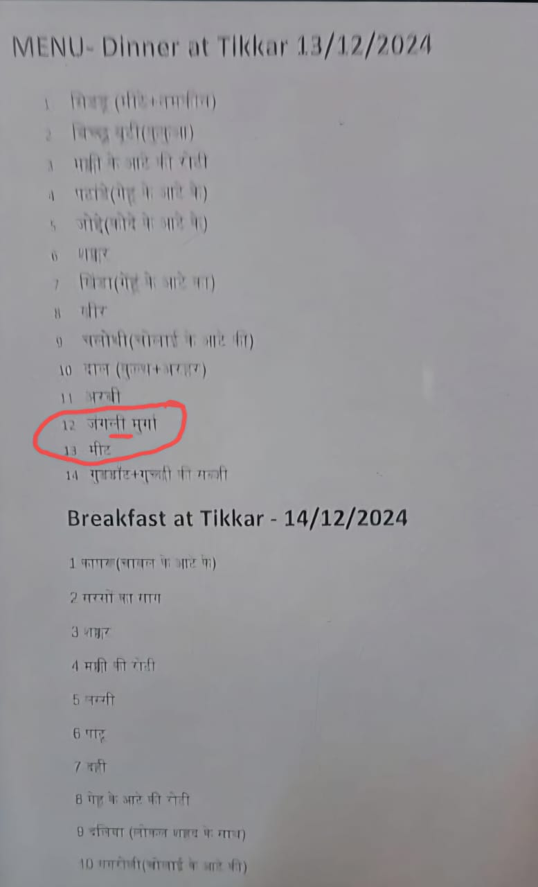 यह विवाद मुख्यमंत्री सुखविंदर सिंह सुक्खू के चौपाल विधानसभा क्षेत्र के दुर्गम इलाके कुपवी दौरे के दौरान सामने आया। उन्होंने टिककर गांव में रात बिताई और स्थानीय लोगों के साथ डिनर किया। इसी दौरान, किसी ने डिनर मेन्यू की लिस्ट लीक कर दी, जिसमें जंगली मुर्गा का उल्लेख था। यह लिस्ट सोशल मीडिया पर वायरल हो गई, जिसके बाद विपक्ष ने मुख्यमंत्री पर निशाना साध लिया।