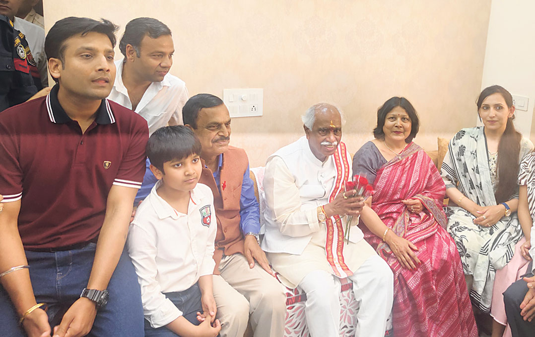 राज्यपाल बंडारू दत्तात्रेय सेक्टर 19 स्थित रेडक्रॉस के राज्य महासचिव डाॅ. मुकेश अग्रवाल के आवास पर पहुंचें। डाॅ. मुकेश अग्रवाल ने परिवार व जिले के गणमान्य लोगों सहित उनका स्वागत किया। इस अवसर पर आरकेएसडी प्रबंधक समिति से श्याम बंसल, डा. अशोक गर्ग, डा. राजेन्द्र ठकराल, नप पूर्व चेयरमैन यशपाल प्रजापति, चंद्रगुप्त गोयल, सुरेश गर्ग नोच, डा. जितेंद्र ठुकराल, डाॅ. प्रदीप शर्मा मौजूद रहे।