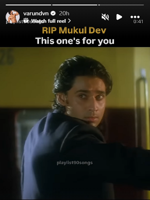 धवन ने देव की पहली फिल्म "दस्तक" के गाने "जादू भरी आंखें" का एक वीडियो साझा किया। उन्होंने इंस्टाग्राम स्टोरीज पर लिखा, "ईश्वर आपकी आत्मा को शांति दें मुकुल देव।