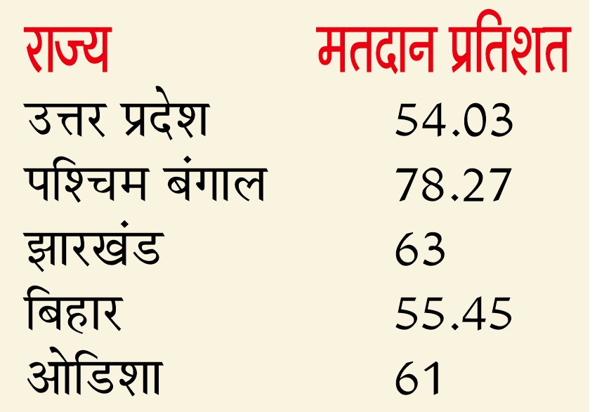 छठा चरण : आठ प्रदेशों की 58 सीटों पर 60% वोटिंग
