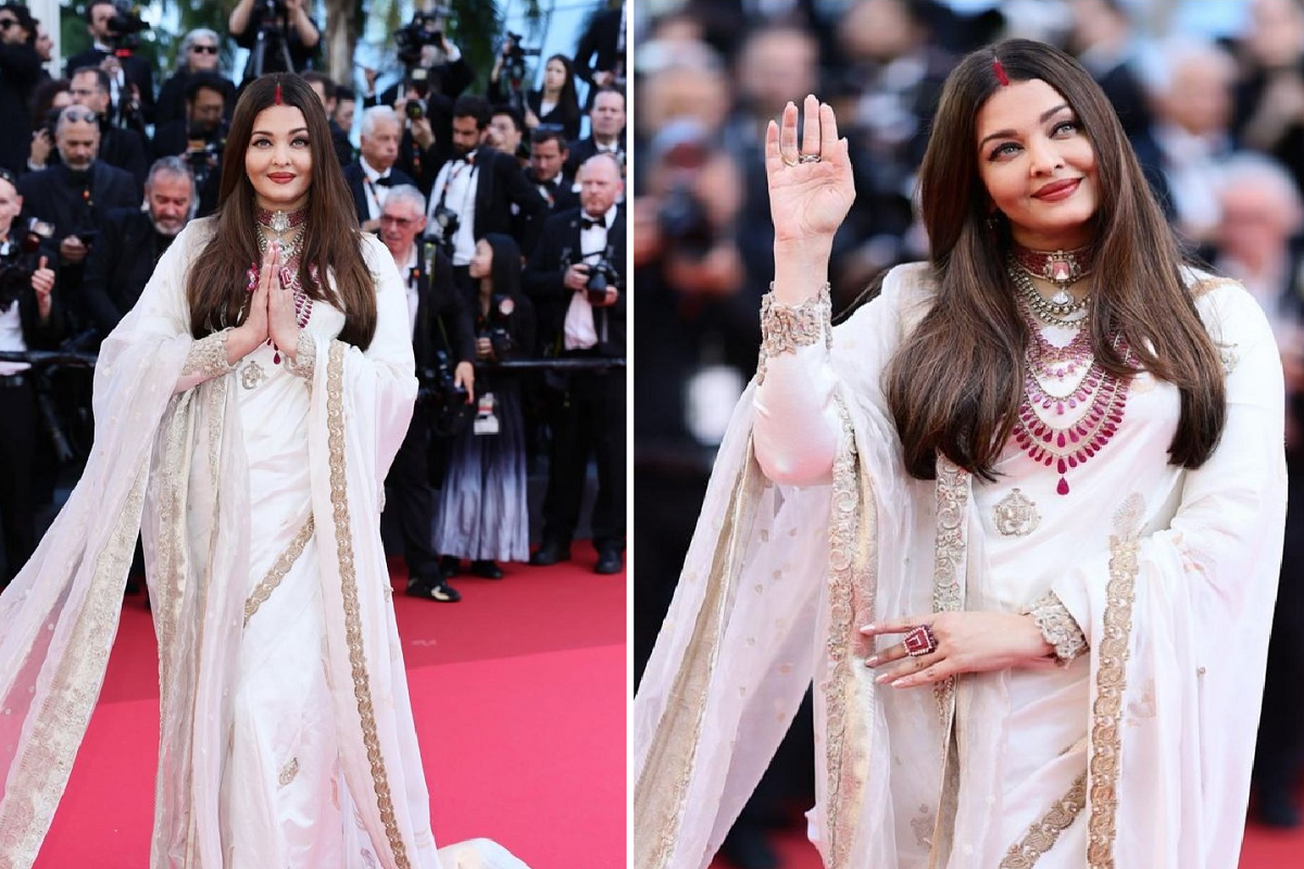 यह शायद पहली बार है जब ऐश्वर्या कान फिल्म महोत्सव में सिंदूर लगाकर रेड कार्पेट पर पहुंची हैं। मांग में सिंदूर किसी हिंदू महिला के विवाहित होने का प्रतीक होता है। श्वर्या आईवरी रंग की बारीक बुनी हुई बनारसी साड़ी, हाथ से तैयार टिशू के दुपट्टे और गले में हीरे और माणिक जड़ा हार पहनकर रेड कार्पेट पर पहुंची, लेकिन सबसे ज्यादा चर्चा उनके सिंदूर की हो रही है।