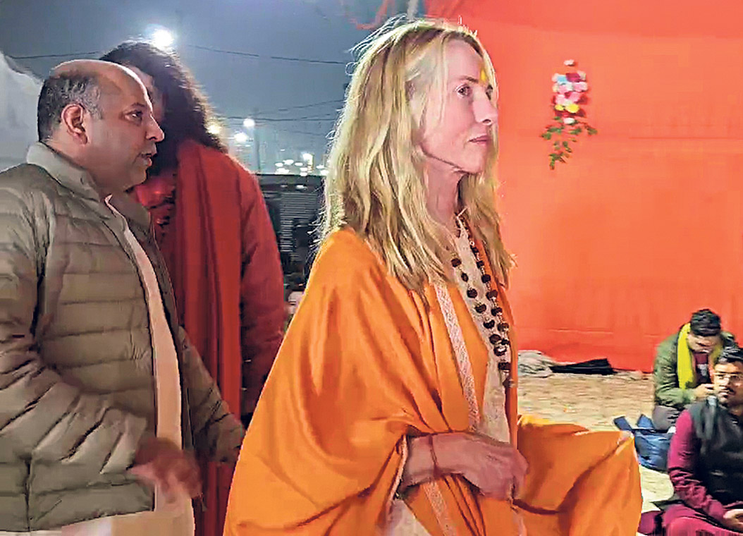 महाकुंभ नगर (एजेंसी) : एप्पल कंपनी के सह संस्थापक दिवंगत स्टीव जॉब्स की पत्नी लॉरेन पॉवेल जॉब्स को महाकुंभ मेले में उनके गुरु स्वामी कैलाशानंद ने नया हिंदू नाम दिया है ‘कमला’। अरबपति महिला कारोबारी लॉरेन ने सोमवार को संगम में डुबकी लगाई थी। फोटो : एएनआई