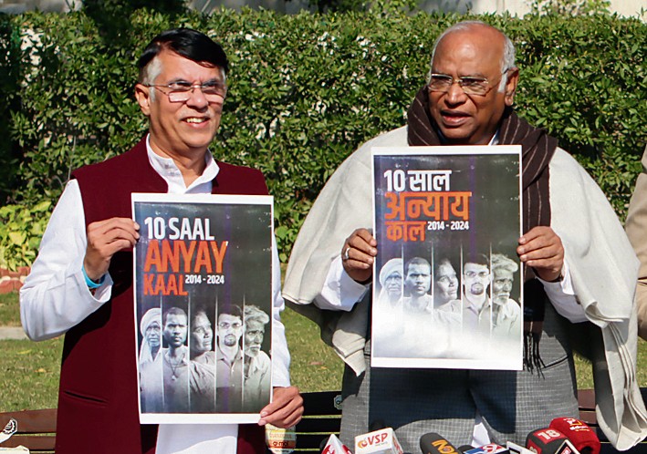 कांग्रेस ने प्रधानमंत्री नरेंद्र मोदी के नेतृत्व वाली सरकार पर सबके साथ अन्याय का आरोप जड़ा है। साथ ही 10 साल की ‘विफलताओं’ को उजागर करने के मकसद से एक ‘ब्लैक पेपर’ जारी किया। इसे ‘10 साल, अन्याय काल’ का नाम दिया गया है।