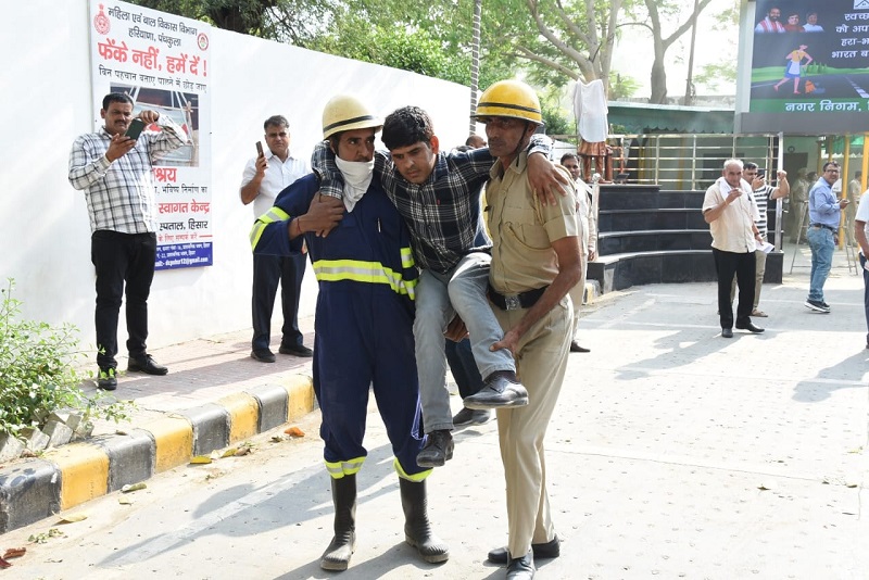 हिसार के नगर निगम कार्यालय में सायरन के साथ युद्ध मॉक ड्रिल का अभ्यास
