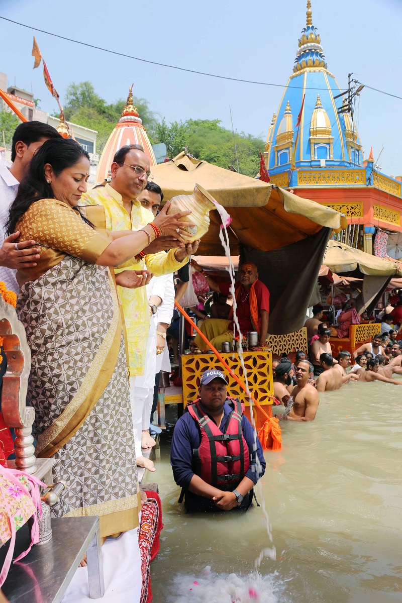 गुप्ता ने सपरिवार यहां मुख्य स्नान घाट हर की पैड़ी पर ब्रह्मकुंड में गंगा नदी में डुबकी लगाई और देश-प्रदेश की समृद्धि की कामना की। मुख्यमंत्री के साथ उनके पति मनीष गुप्ता और पुत्र निकुंज ने भी गंगा स्नान किया। स्नान के बाद गुप्ता ने ब्रह्मकुंड पर गंगा पूजन किया। गंगा सभा के तीर्थ पुरोहितों ने विधि विधान से उनकी पूजा संपन्न कराई।