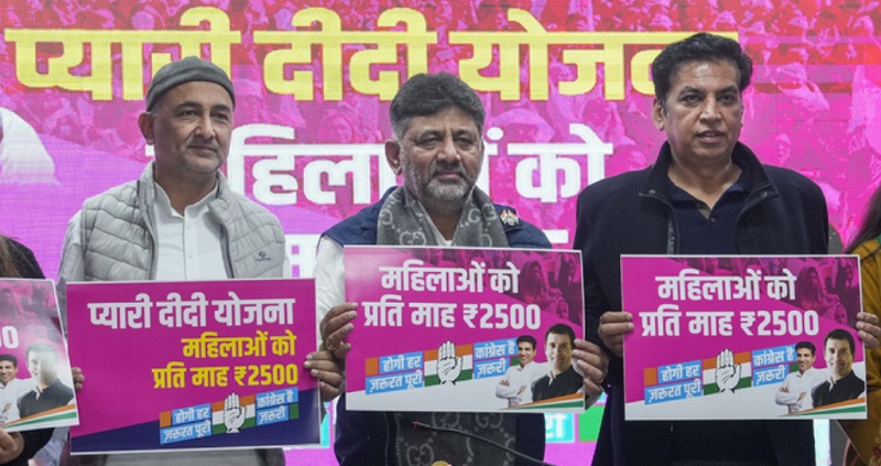 कर्नाटक के उप मुख्यमंत्री डी. के. शिवकुमार ने यहां दिल्ली प्रदेश कांग्रेस कमेटी के कार्यालय में इस योजना का ऐलान किया। इस मौके पर प्रदेश कांग्रेस कमेटी के अध्यक्ष देवेंद्र यादव, दिल्ली प्रभारी काजी मोहम्मद निजामुद्दीन, अखिल भारतीय महिला कांग्रेस की अध्यक्ष अलका लांबा, राष्ट्रीय प्रवक्ता रागिनी नायक तथा पार्टी के कई अन्य नेता मौजूद थे। दिल्ली विधानसभा चुनाव के लिए कांग्रेस की यह पहली बड़ी घोषणा है।