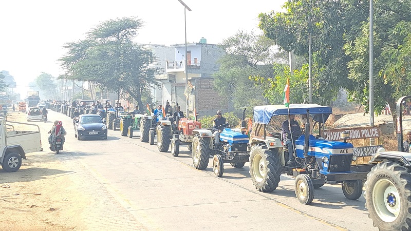 Farmers Protest: बाढड़ा में किसानों ने ट्रैक्टर मार्च निकाला, एसकेएस की काल मिलते ही बार्डर के लिए कूच कर करने को तैयार किसान