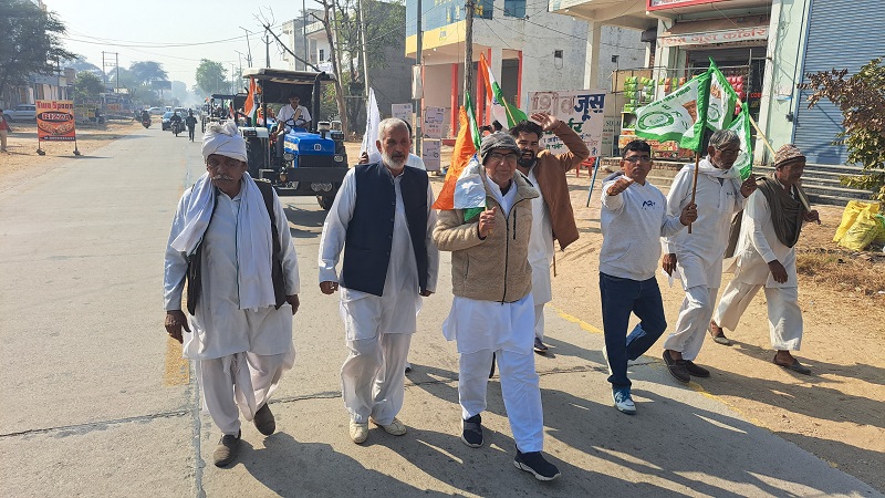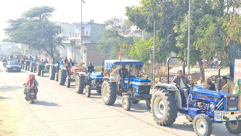 Farmers Protest: संयुक्त किसान मोर्चा के आह्वान पर चरखी दादरी जिले के बाढ़ड़ा कस्बे में विभिन्न किसान संगठनों ने ट्रैक्टर मार्च निकालते हुए किसान आंदोलन का समर्थन किया। इस दौरान किसानों ने एमएसपी सहित किसानों की दूसरी मांगें शीघ्र पूरा नहीं करने पर बड़ा खामियाजा भुगतने की चेतावनी दी है।