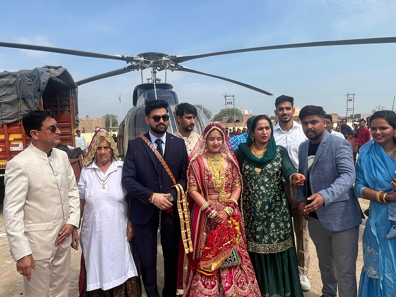 गांव कागदाना निवासी डा. जगदीश की पत्नी सरोज की इच्छा थी, उसके बेटे की दुल्हन हेलीकॉप्टर में आए। अपनी पत्नी की इच्छा करते हुए डा. जगदीश ने शादी से पहले ही हेलीकॉप्टर दुल्हन लेकर आने के लिए बुक करवा दिया।
