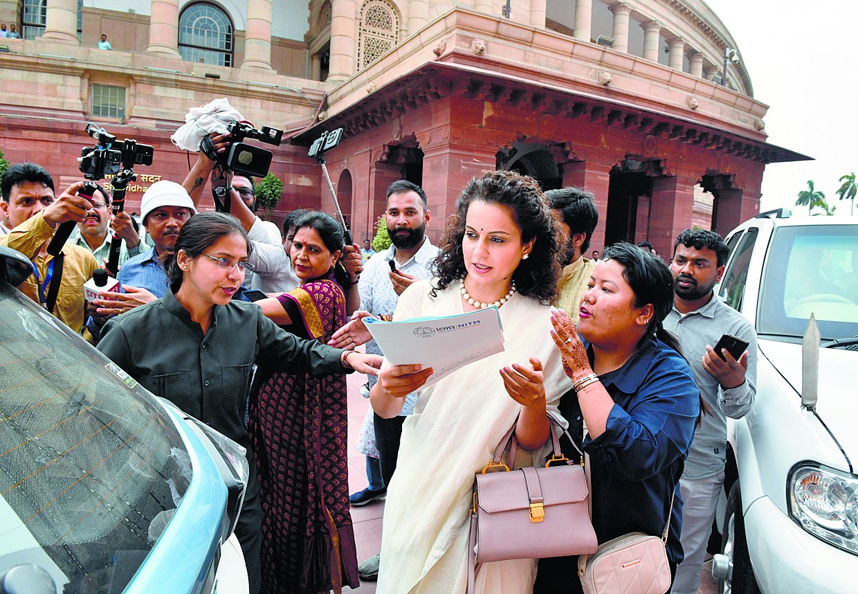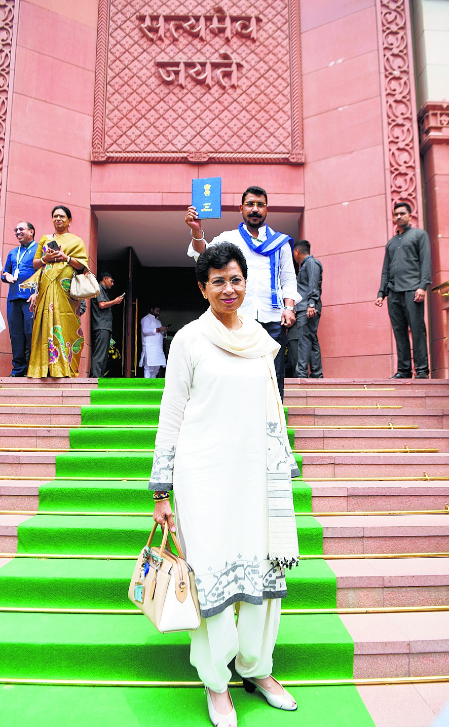 नयी दिल्ली : लोकसभा के नवनिर्वाचित सदस्यों ने सोमवार को जब शपथ ली तो भारत की भाषायी विविधता की झलक देखने को मिली। अधिकतर सदस्यों ने हिंदी में शपथ ली तो कई सदस्यों ने संस्कृत, असमिया, मैथिली, तेलुगू तथा पंजाबी एवं अन्य भारतीय भाषाओं में सत्य और निष्ठा की शपथ ली। प्रधानमंत्री मोदी, केंद्रीय मंत्री अमित शाह, राजनाथ सिंह, नितिन गडकरी, अनुराग ठाकुर, अरुण गोविल, शिवराज सिंह चौहान, कंगना रणौत, सैलजा, दीपेंद्र हु्ड्डा, नवीन िजंदल, िचराग पासवान और मनोहर लाल समेत कई मंत्रियों ने हिंदी में शपथ ली। पूर्व केंद्रीय मंत्री दिवंगत सुषमा स्वराज की पुत्री बांसुरी स्वराज एवं सोनीपत से सतपाल ब्रह्मचारी समेत कुछ सांसदों ने संस्कृत में शपथ ली। चंडीगढ़ से कांग्रेस सांसद मनीष तिवारी और बठिंडा से हरसिमरत कौर ने पंजाबी में शपथ ली। - सभी फोटो : प्रेट्र