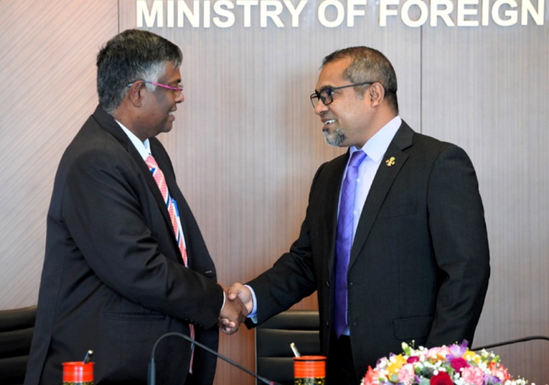 मालदीव सरकार की ओर से विदेश मंत्री अब्दुल्ला खलील और मालदीव में भारत के उच्चायुक्त जी बालासुब्रमण्यम ने समझौता ज्ञापनों पर हस्ताक्षर किए।
