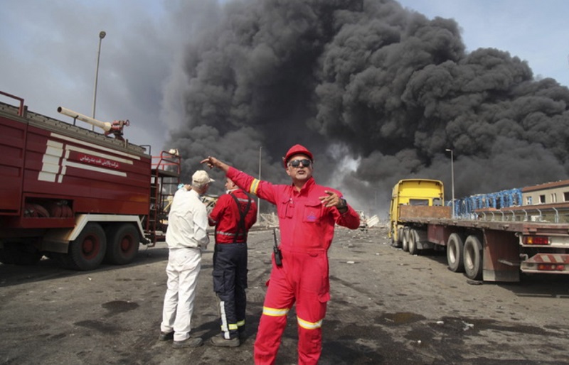 शनिवार को शाहिद राजाई में हुए विस्फोट की सोशल मीडिया फुटेज में विस्फोट से ठीक पहले आग से लाल रंग का धुआं उठता हुआ देखा जा सकता है। इससे पता चलता है कि विस्फोट में कोई रासायनिक यौगिक शामिल था। सोशल मीडिया पर वीडियो में धमाके के बाद काला धुआं निकलता हुआ दिखाई दिया। अन्य वीडियो में विस्फोट के केंद्र से कई किलोमीटर या मीलों दूर इमारतों के शीशे उड़ते हुए दिखाई दिए।