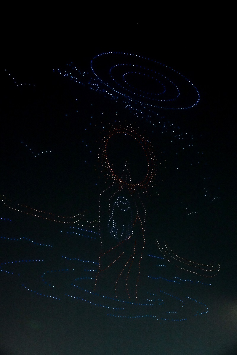 महाकुंभ में ड्रोन शो की मंत्रमुग्ध करने वाली रोशनी और संगीत का शानदार समन्वय ने समा बांध दिया। शो के दौरान 'समुद्र मंथन' से लेकर भगवान शिव द्वारा 'विष पान' करने के क्षण तक की विभिन्न घटनाओं को दिखाया गया। मीडिया रिपोर्ट के अनुसार, यह शो महाकुंभ नगर के सेक्टर-7 में उत्तर प्रदेश के पर्यटन विभाग द्वारा आयोजित किया गया है।