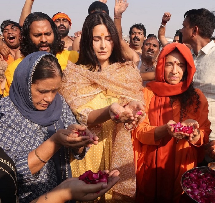 कैटरीना ने उत्तर प्रदेश के इलाहाबाद में कुंभ मेला में संगम में डुबकी लगाई और वहां पर आने वाले श्रद्धालुओं के बीच खिचड़ी का वितरण किया। स्नान करते वक्त वह साधू-संतों से घिरी हुई दिखाई दी। इस दौरान वह भक्ती में लीन नजर आईं। सास के संग कैटरीना को देख लोग उन्हें 'परफेक्ट बहू' कह रहे हैं।