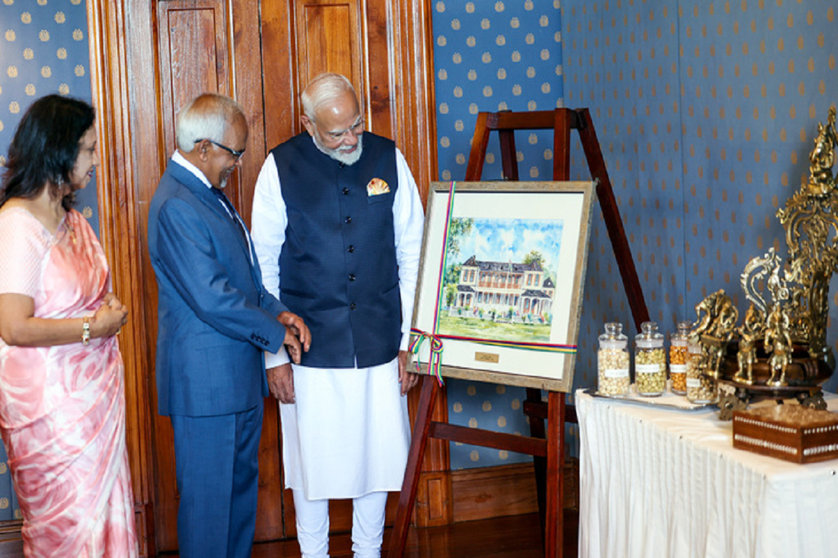 Modi Mauritius visit : PM मोदी ने मॉरीशस के राष्ट्रपति धरम गोखुल से की मुलाकात, संगम का पवित्र जल....बनारसी रेशमी साड़ी की भेंट
