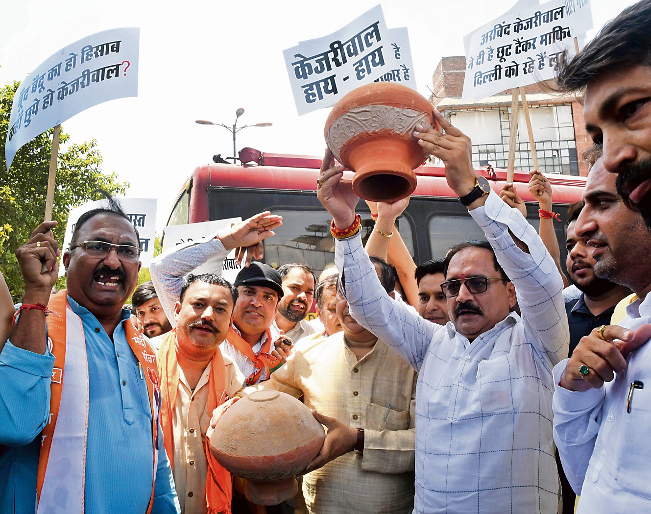 रविवार को भाजपा ने आम आदमी पार्टी (आप) सरकार के खिलाफ प्रदर्शन किया। वहीं, आप ने भाजपा नेताओं व कार्यकर्ताओं पर तोड़फोड़ करने के आरोप लगाये। भाजपा की दिल्ली इकाई के अध्यक्ष वीरेंद्र सचदेवा ने आप पर तीखा हमला करते हुए कहा कि जब अरविंद केजरीवाल मुख्यमंत्री बने, तब दिल्ली जल बोर्ड करोड़ों रुपये के मुनाफे में था। उन्होंने कहा, ‘केजरीवाल के पास एक वर्ष से ज्यादा समय तक दिल्ली जल बोर्ड के अध्यक्ष पद का प्रभार रहा। यह अजीब और आश्चर्यजनक है कि एक वर्ष से अधिक समय की ऑडिट रिपोर्ट गायब है और जल बोर्ड भारी कर्ज में डूबा है।’ सचदेवा ने आरोप लगाया कि आम आदमी पार्टी के सभी मंत्री पानी चोरी कर रहे हैं और दिल्ली में टैंकर माफिया चला रहे हैं।