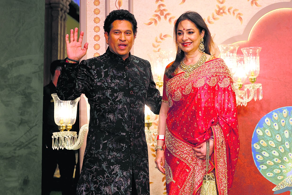 मुंबई (एजेंसी) : प्रधानमंत्री नरेंद्र मोदी ने शनिवार को नवविवाहित जोड़े अनंत अंबानी और राधिका मर्चेंट को आशीर्वाद दिया। विवाह समारोह में देश-विदेश की कई हस्तियों, उद्योगपतियों और राजनेताओं ने भाग लिया। मोदी यहां अंबानी परिवार के स्वामित्व वाले ‘जियो वर्ल्ड कन्वेंशन सेंटर’ में आयोजित समारोह में शामिल होने पहुंचे, जिसका नाम ‘शुभ आशीर्वाद' रखा गया है। मोदी का स्वागत मुकेश अंबानी और उनकी पत्नी नीता अंबानी ने किया तथा उन्हें समारोह स्थल तक ले गये। नवविवाहित जोड़े ने मोदी के पैर छूकर उनका आशीर्वाद लिया। एशिया के सबसे अमीर व्यक्ति मुकेश अंबानी के बेटे अनंत अंबानी और उद्योगपति वीरेन मर्चेंट की बेटी राधिका मर्चेंट शुक्रवार को मुंबई में एक भव्य समारोह में परिणय सूत्र में बंध गए। फोटो : साभार एक्स