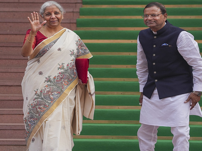 केंद्रीय वित्त मंत्री निर्मला सीतारमण ने मिथिला पेंटिंग वाली क्रीम कलर की साड़ी पहन कर शनिवार को लोकसभा में प्रधानमंत्री नरेन्द्र मोदी के नेतृत्व वाली सरकार के तीसरे कार्यकाल का पहला पूर्ण बजट पेश किया।