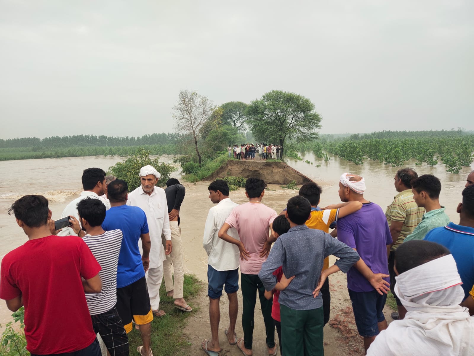 पानीपत में सनौली खुर्द खंड के गांव नवादा पार व तामशाबाद के बीच देर रात को यमुना का तटबंध टूट गया। जिससे खंड के पांच गांव नवादा पार, जलालपुर द्वितीय, पत्थरगढ़, राणा माजरा व गढी बेसक का संपर्क कट गया है। इन गांवों के चारो तरफ पानी भर गया है। इन गांवों को जोडने वाली सडक़ पर कई फीट पानी भरा हुआ है। वहीं इन गांवों के अलावा गांव सनौली खुर्द, झांबा, धनसौली सहित 8 गांव की करीब 40 हजार एकड फसल पानी में डूब गई है। यमुना का पानी सनौली खुर्द गौशाला में घुस गया, जिससे करीब 10 गाय एवं बछडों की मौत हो गई और ग्रामीणों ने करीब एक हजार गायों को गौशाला से बाहर निकाल कर सडक़ पर छोड दिया है। जिला प्रशासन की तरफ से उपायुक्त वीरेंद्र दहिया, डीआरओ राजकुमार भोरिया सहित अन्य अधिकारियों ने सनौली खुर्द गौशाला व गांवों का दौरा किया। गौशाला के प्रधान राकेश गुप्ता ने बताया कि यमुना के पानी से कुछ गायों व बछडों की मौत हो गई और करीब एक हजार गायों को गौशाला से बाहर निकाल कर सडक़ पर छोडा गया है। बता दे कि जिस स्थान से यमुना का तटबंध अभी टूटा है, इसी स्थान के पास से 2013 में भी टूटा था और उस समय भी यमुना के पानी ने भारी तबाही मचाई थी। यमुना का तटबंध अब भी उसी स्थान के पास से टूटा है। यमुना के पानी से नवादा पार, जलालपुर द्वितीय, पत्थरगढ़, राणा माजरा व गढी बेसक, सनौली व धनसोली गांव प्रभावित हुए है। पानीपत में सोमवार देर शाम तक यमुना में खतरे के निशान से थोडा नीचे 231.500 मीटर पर पानी चल रहा था और रात को ज्यादा पानी आने पर तटबंध टूट गया।