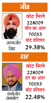 फरीदकोट सीट पर पूर्व सांसद स्वर्गीय विमल कौर खालसा के पुत्र सरबजीत खालसा ने लोकसभा सीट जीती। पूर्व प्रधानमंत्री इंदिरा गांधी के हत्यारे बेअंत सिंह की पत्नी सरबजीत कौर खालसा ने 1989 में चुनाव लड़ा था। रोपड़ सीट विमल कौर खालसा ने सीट जीत ली थी। सरबजीत खालसा ने इससे पहले 2004 में बठिंडा से और 2007 में भदौड़ से विधानसभा चुनाव लड़ा। 2014 में भी फतेहगढ़ साहिब से 2019 में बहुजन समाज पार्टी की टिकट पर चुनाव लड़ा था लेकिन सभी चुनाव हार गए थे। इस बार लोकसभा चुनाव में सरबजीत खालसा ने जीत हासिल की।